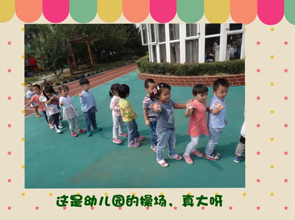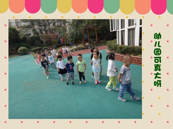 今天阳光明媚,老师带着我们,我们排着整齐“小火车”,来到了幼儿园的小花园,认识了大班的哥哥姐姐,还逛到了幼儿园大大的操场,我们的幼儿园可真大,真漂亮呀!