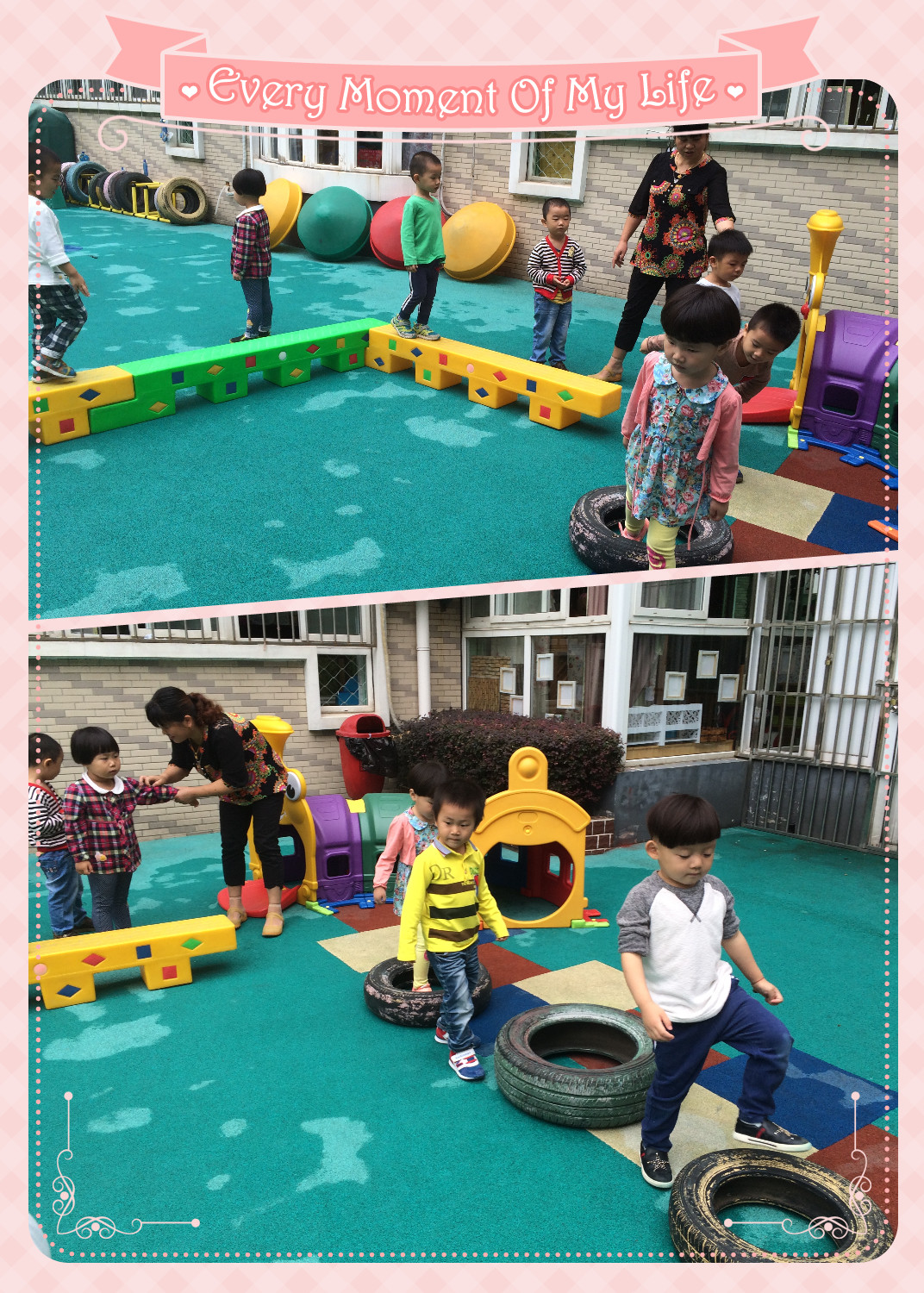 独木桥,小轮胎,走来走去,真有趣!