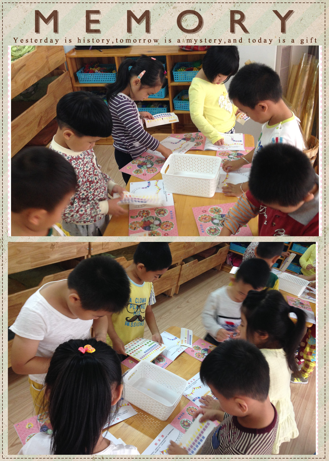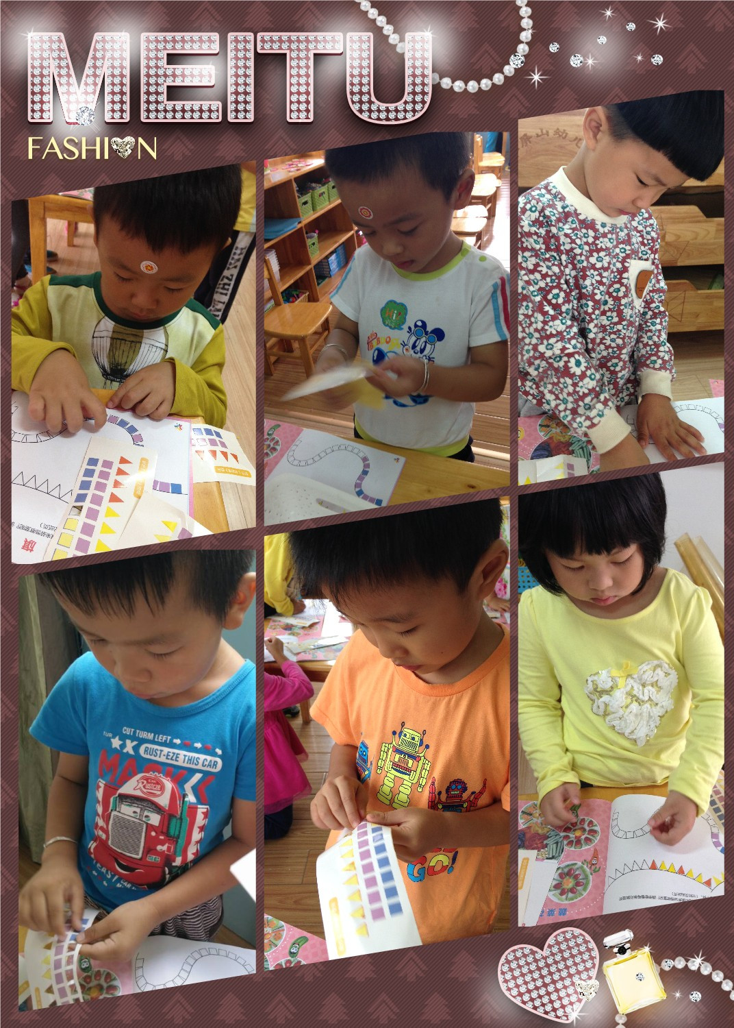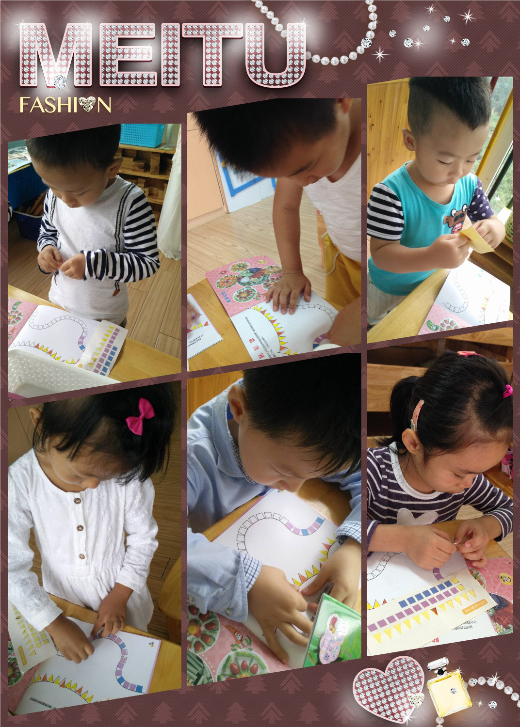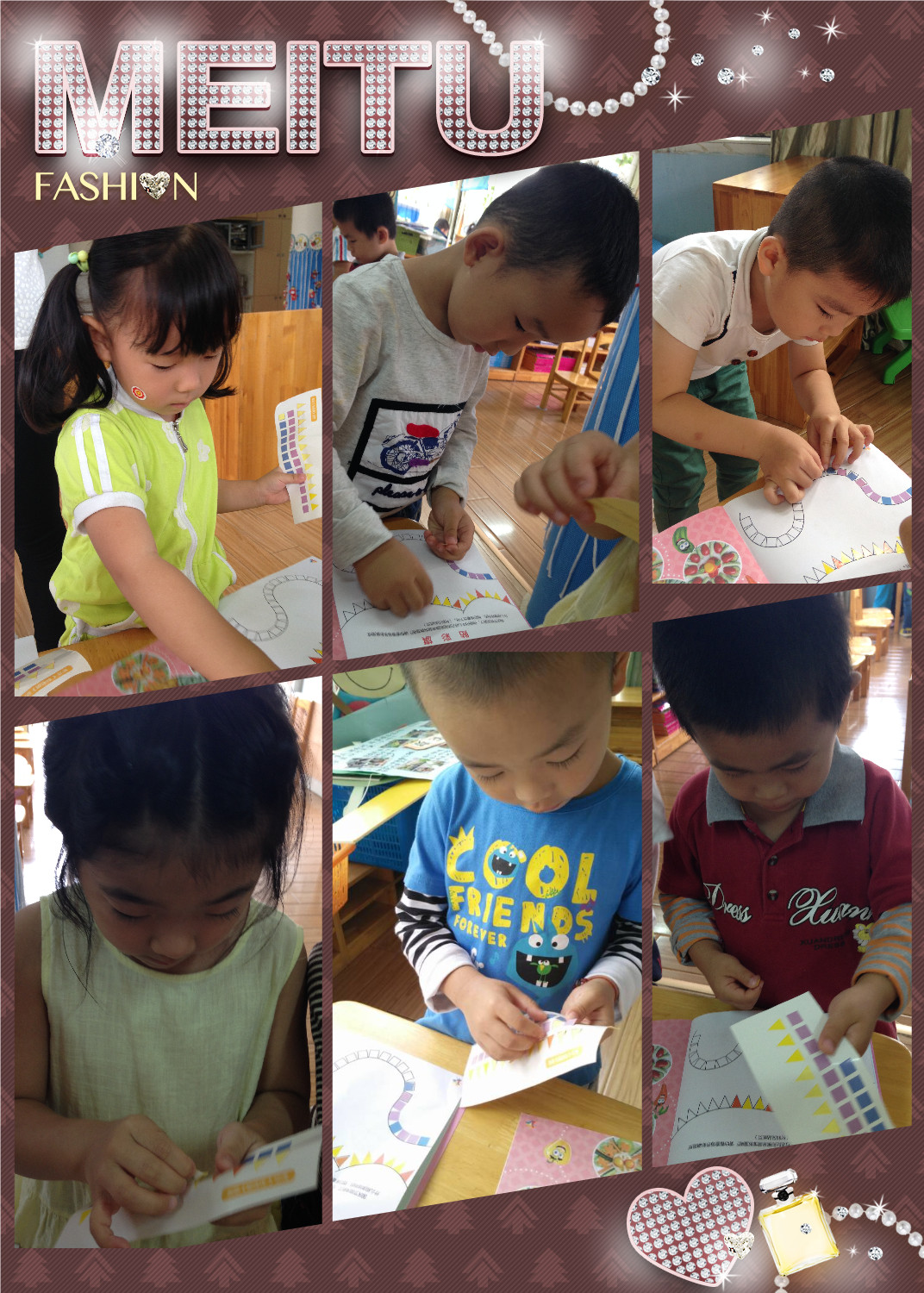 “红色、黄色、黄色、红色、黄色”我一边贴,一遍数,这样就不会贴错了哦。