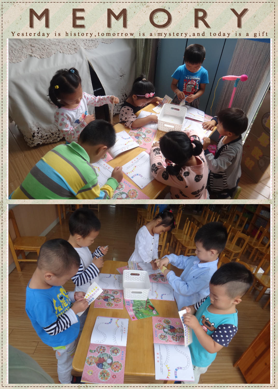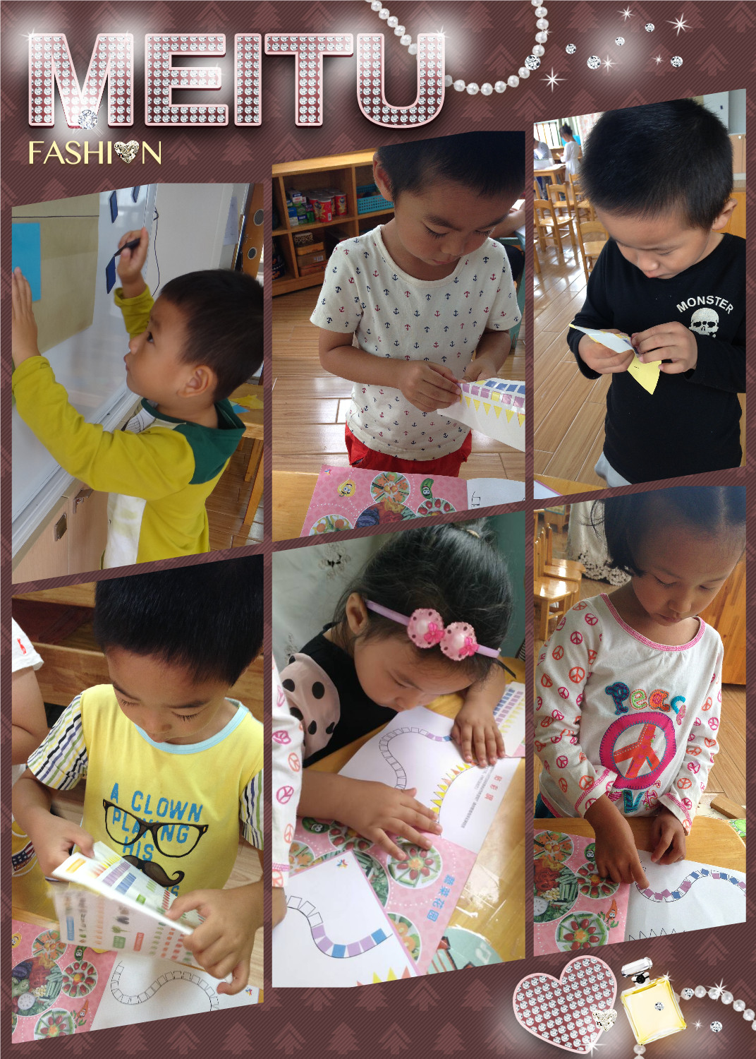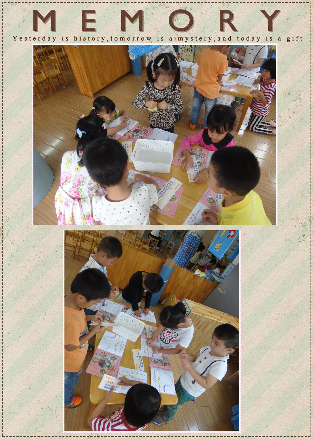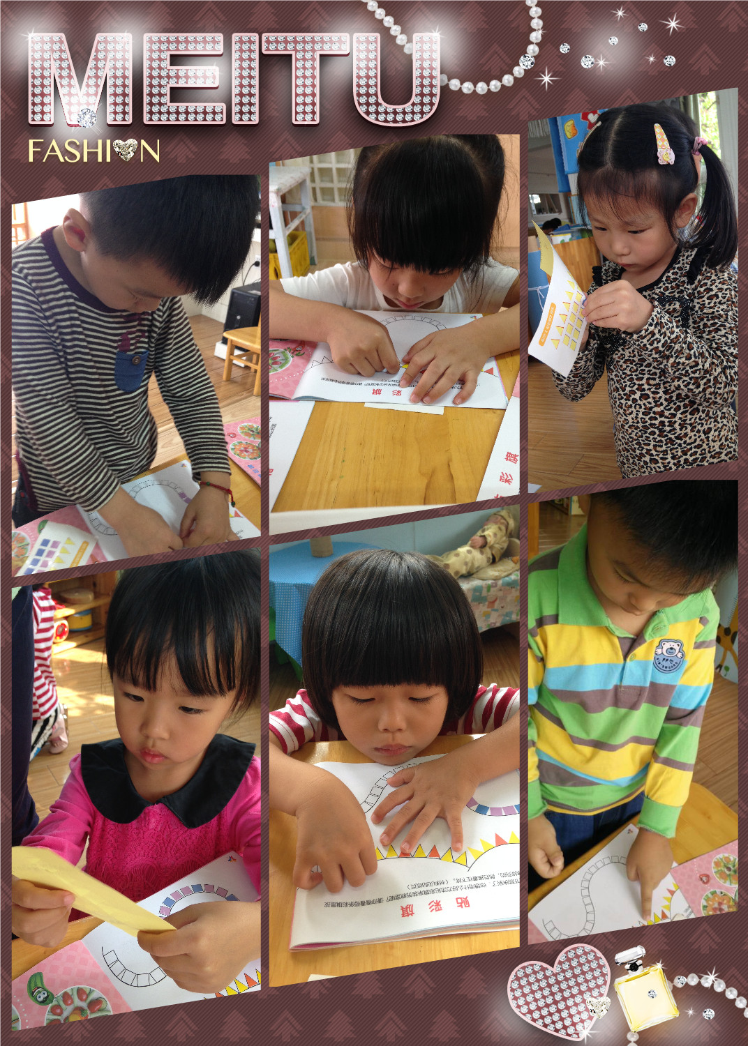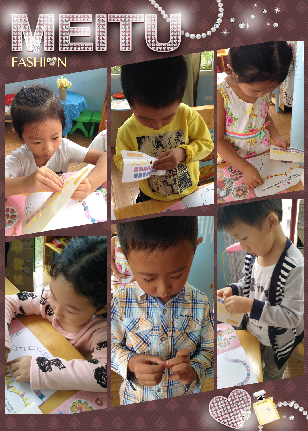 “红色、黄色、黄色、红色、黄色”我一边贴,一遍数,这样就不会贴错了哦。
