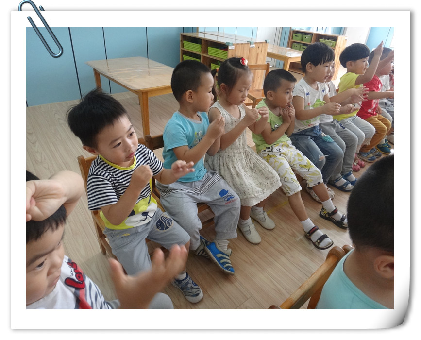 “一根手指头呀,变呀变呀,变成毛毛虫呀,两根手指头,变呀变呀,变成小白兔呀。。。。。。。。”幼儿园里面真好玩呀,每天都会有好多的游戏。看,老师又在教我们玩手指游戏啦!我们可喜欢玩手指游戏啦。爸爸妈妈,我学会了回去教你们哦。