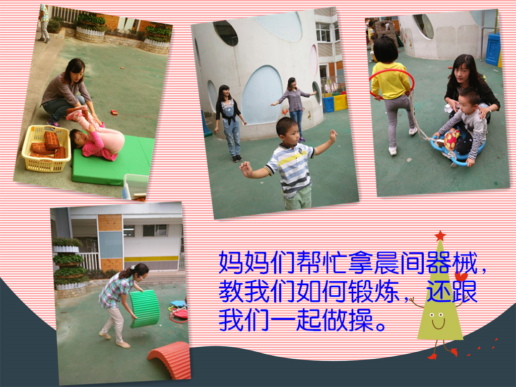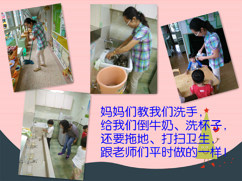 妈妈们在幼儿园待了一整天,更清楚的知道我们小朋友在幼儿园一天的学习和生活情况,也了解了老师们一天中与小朋友在一起是怎样的,相信她们一定也收获了很多快乐吧!期待下三位家长的来临哟!
