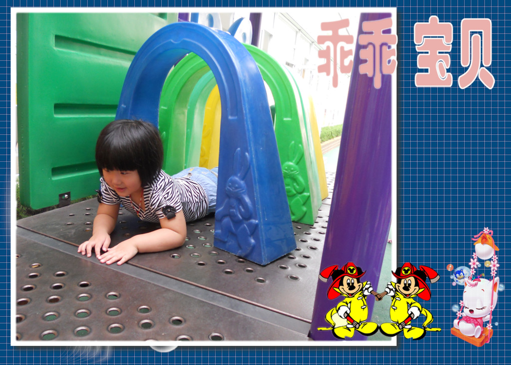在滑滑梯上,我学毛毛虫慢慢的走, 别打扰哦,我在认真的帮小动物们找到