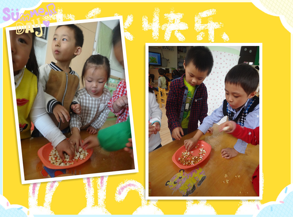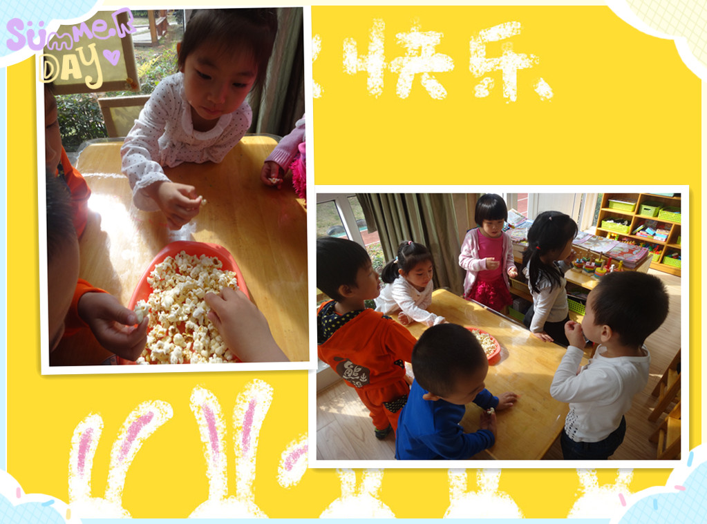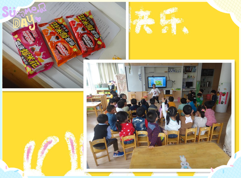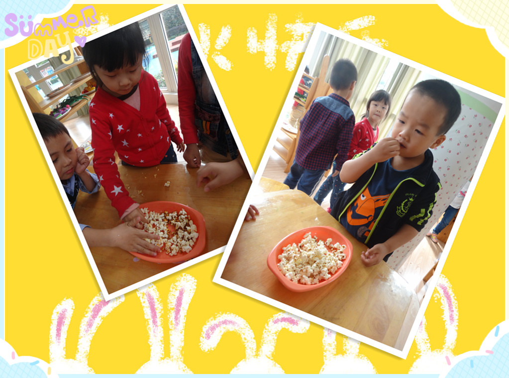 “一个老头子,头上长胡子,脱掉绿袍子,浑身是珠子”猜猜这个谜底是什么?哈哈,你猜到了吗?就是好吃的玉米哦。玉米的吃法可多了,有玉米烙、玉米糊、玉米沙拉等等好多,不过我们最爱的还是香香的爆米花了,今天,老师带领我们中一班的小朋友一起现场制作好吃的爆米花,好开心哦,我都闻到香香的味道啦,巧克力味的爆米花是我的最爱了。悄悄告诉你,我们是用微波炉做的哦,快来和我们一起品尝吧!