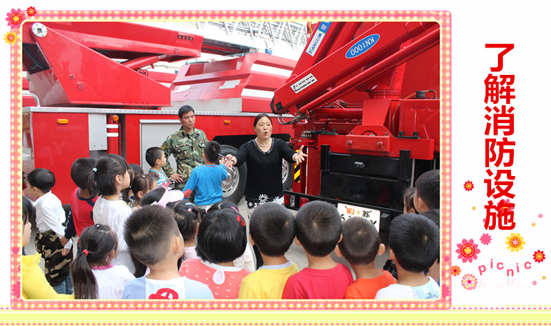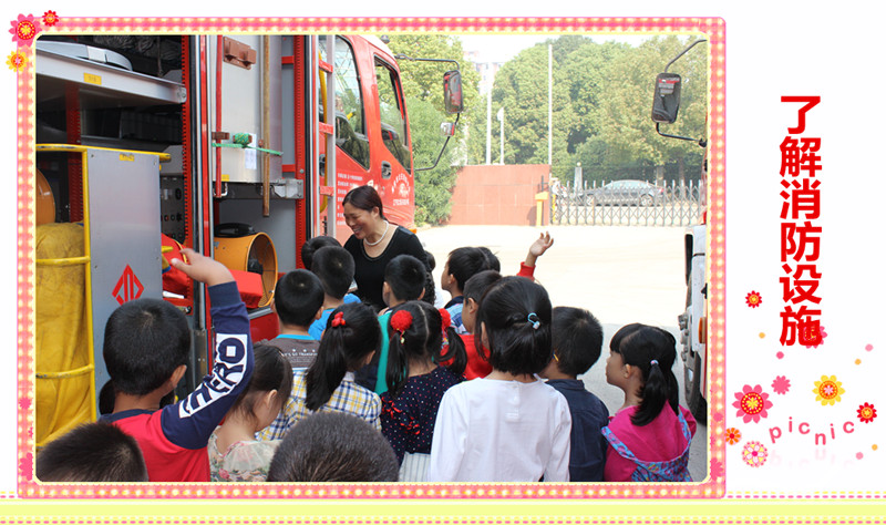 10月15日我园组织大班幼儿参观消防队。一路上孩子们有说有笑,开心极了,孩子们一路手拉手来到消防队,参观了消防演习。消防队的叔叔热情地接待了小来客,小朋友们睁大好奇的眼睛认真地听着消防员叔叔给我们介绍的消防知识,为了让大家全面地了解消防车的各个部分,消防员叔叔对各个器械进行了详细的讲解和操作示范,并邀请孩子们上车试试,让大家真实地感受了一下消防车。接着还手把手地教小朋友叠被子。 通过这次丰富而又生动的活动,使孩子们直观、真实地了解了消防车、消防工具,增强了孩子们的感性认知,拓展了孩子们的视野,提高了孩子们安全意识和自我保护能力,达到了预期的教育效果。同时消防队员们勇敢、守纪的品质也激励着孩子们健康成长。