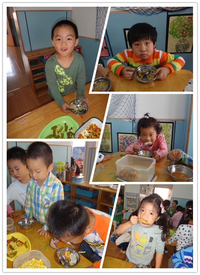 品尝了这么多美味的菜肴,小肚子吃得饱饱的,多吃这些粮食对我们的身体好,而且也不能浪费哦。