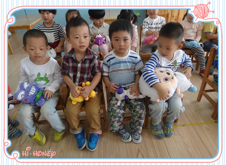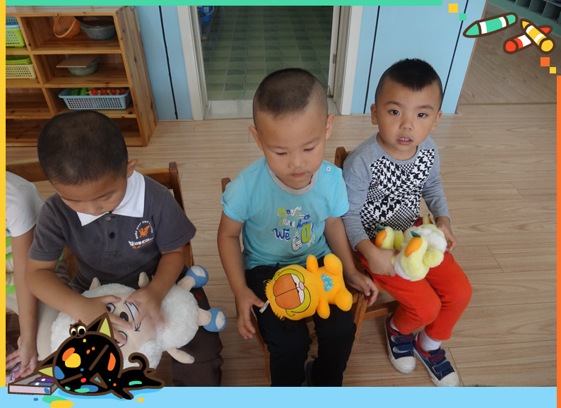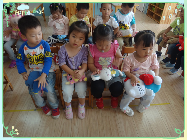 今天我们小朋友带着自己喜欢的毛绒玩具来到幼儿园,我们的小朋友也来学习怎么哄宝贝睡觉。看,有的孩子把毛绒玩具抱在怀里;有的孩子把毛绒玩具捧在手心里;还有的孩子竖着抱着自己的宝贝轻轻拍着;个个都们专注呢。