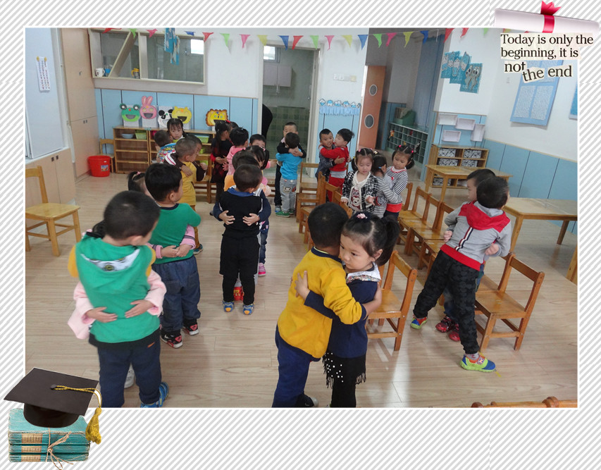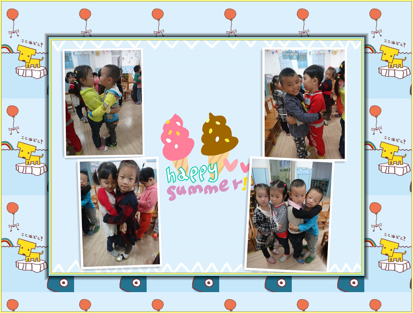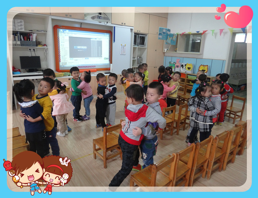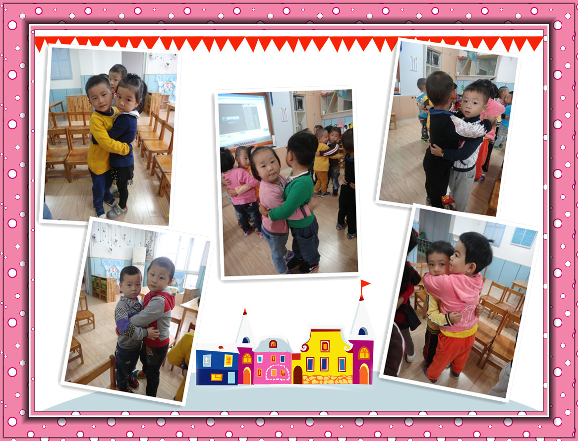 我们的小朋友上幼儿园也有一个月了,从刚开始小朋友互相不认识到现在我们小朋友已经能说出好多好朋友的名字了呢!看,我们的孩子和自己的好朋友们玩抱一抱的游戏呢。真开心呀!