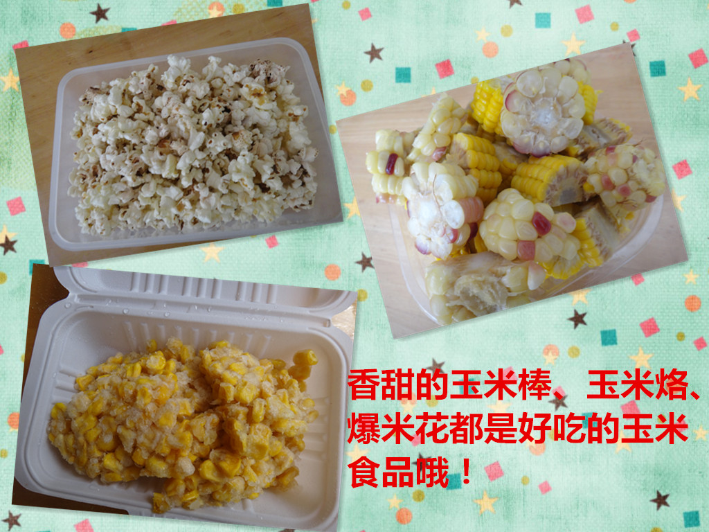 玉米还能做出其他好吃的食品,今天就不一一介绍了,让我们回家和爸爸妈妈一起去发现吧!