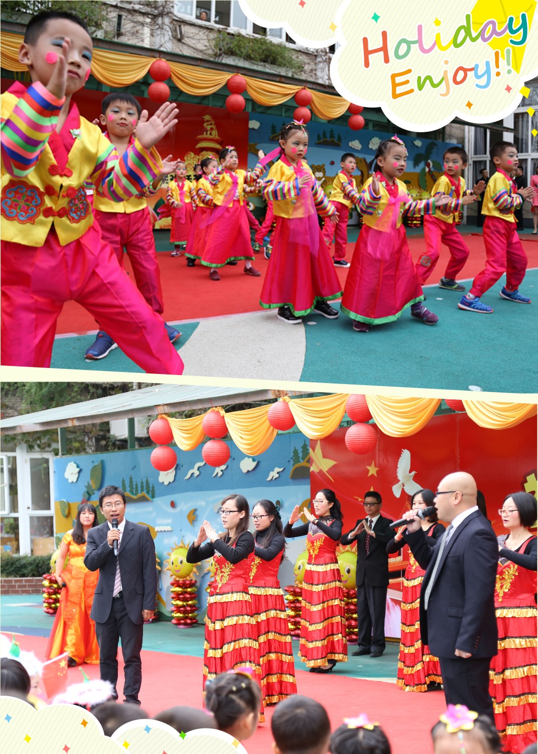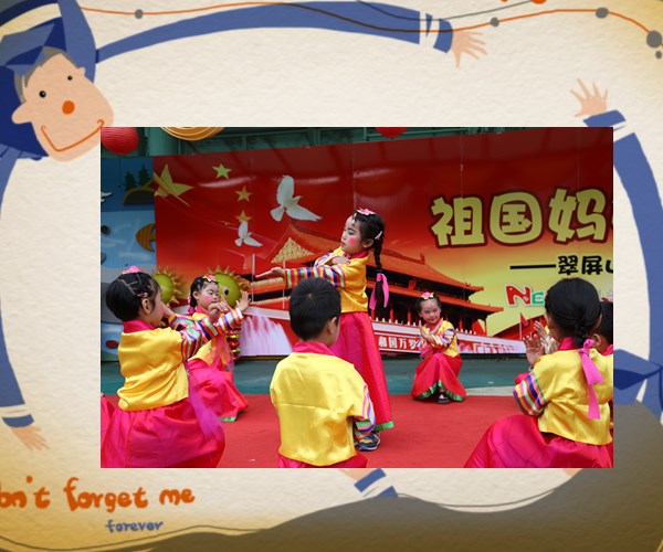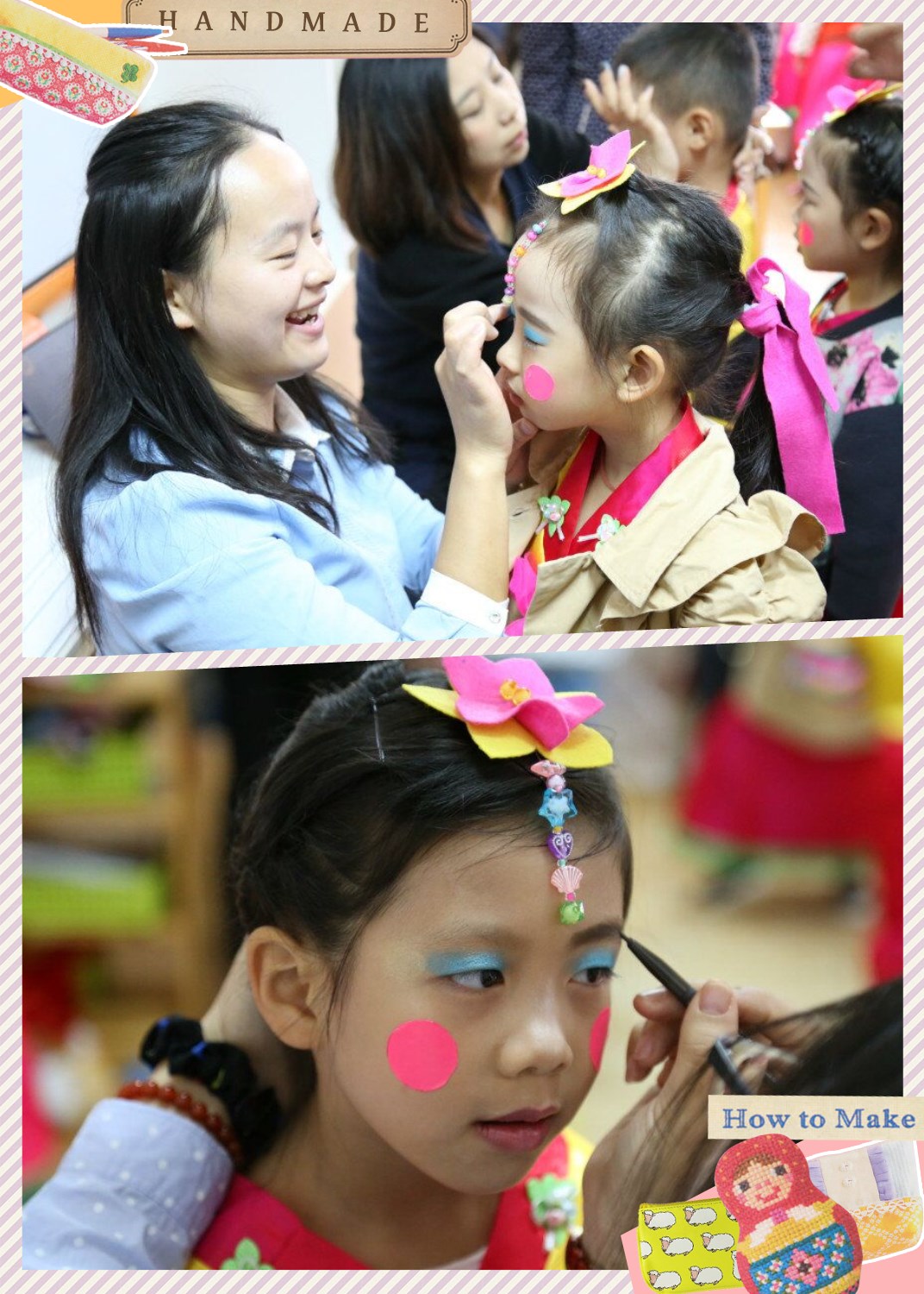 我是中国娃 适当向幼儿介绍我国的民族特色,从小激发孩子的爱国情感。因此我们开展了《我是中国娃》的主题活动,知道我国是一个多民族的国家,不同的民族有自不同的文化和风俗,各族人民相互团结,共同生活在大家庭里。在主题结束时,我们以《民族大联欢》的方式进行主题汇报,通过民族舞蹈、特色小吃、手工艺品等展现汉族、藏族、蒙古族、维吾尔族、朝鲜族、满族几个少数民族的特色,进一步增进孩子们对祖国的了解和认识,激发幼儿热爱祖国的情感。 我班代表的是朝鲜族,在大联欢中男生展现出朝鲜族舞蹈的欢快、活力,女生展示出柔美、温和,充分展现出朝鲜族舞蹈的特色 朝鲜族的红脸蛋最可爱。