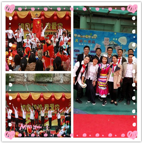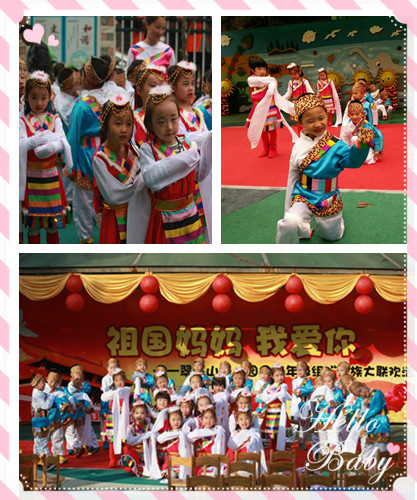 10月28日上午,南京市翠屏山幼儿园大班组举行了“祖国妈妈我爱你民族大联欢”活动,此活动结合了《中国娃》的主题,老师们从56个民族中选择了6个最为孩子们熟知的民族分别为维吾尔族、朝鲜族、蒙古族、满族、藏族和汉族,并围绕其设计了一系列的以班级、年级为单位的教育教学活动,使孩子们对祖国的民族有了更多、更深入的了解。在此基础上,老师们精心策划了今天的这场大型亲子活动——“祖国妈妈我爱你民族大联欢”的活动。早上8点幼儿园操场上就热闹起来,家长带精心装扮好的的孩子,等待一场名族秀的上演。。。在这个盛会上,孩子、家长和老师们全都身着鲜艳各民族服饰,载歌载舞、欢聚一堂。孩子们的舞蹈,家长们的精彩演出都迎来一阵阵热烈的掌声和喝彩声。不仅如此,各班级还为孩子们精心准备了名族特色美食,有新疆的葡萄干、哈密瓜;藏族的酥油茶、鲜花饼;蒙古族的牛肉干、奶片;朝鲜的泡菜等等。这场活动不仅有效的促进了亲子家园互动,更是增进了名族的团结和对祖国的热爱。