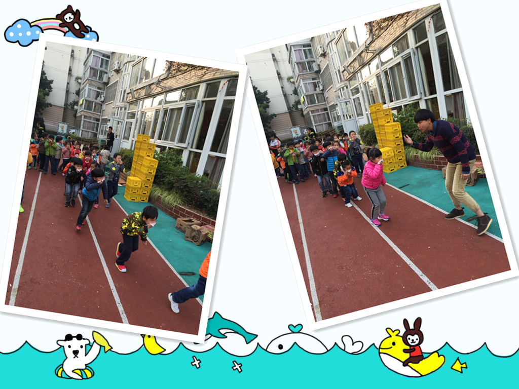 孩子们一个接一个有序地在教师的组织下进行逃生。