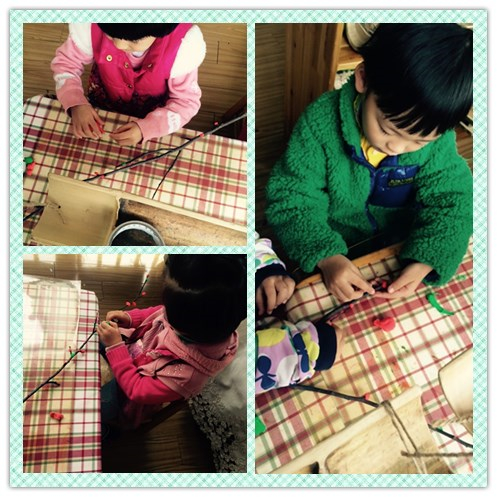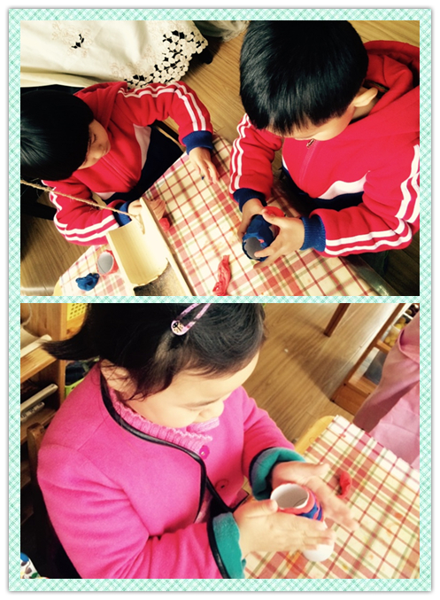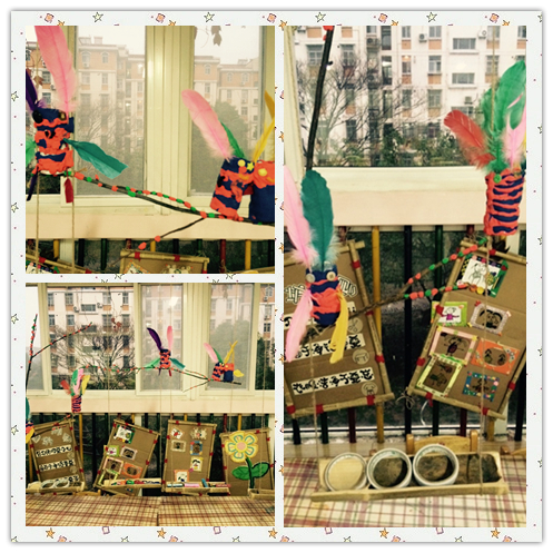 今天,我们玩游戏的时候选择了美工区。我们用超轻粘土给捡回来的枯树枝点缀上漂亮的小花。我们还用纸筒、毛根、纽扣、羽毛做了小白兔、小鸟。快来看,我们的鸟儿已经飞上枝头了~
