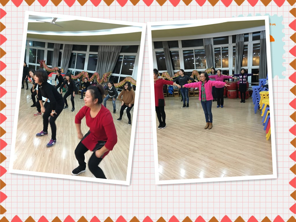 又即将迎来一年一度的亲子运动会啦!我们班的妈妈们也在为运动会精心准备着,在运动会的前两个星期中都有两天会在百忙之中聚集在幼儿园的多功能厅排练健美操,妈妈们练得十分投入。