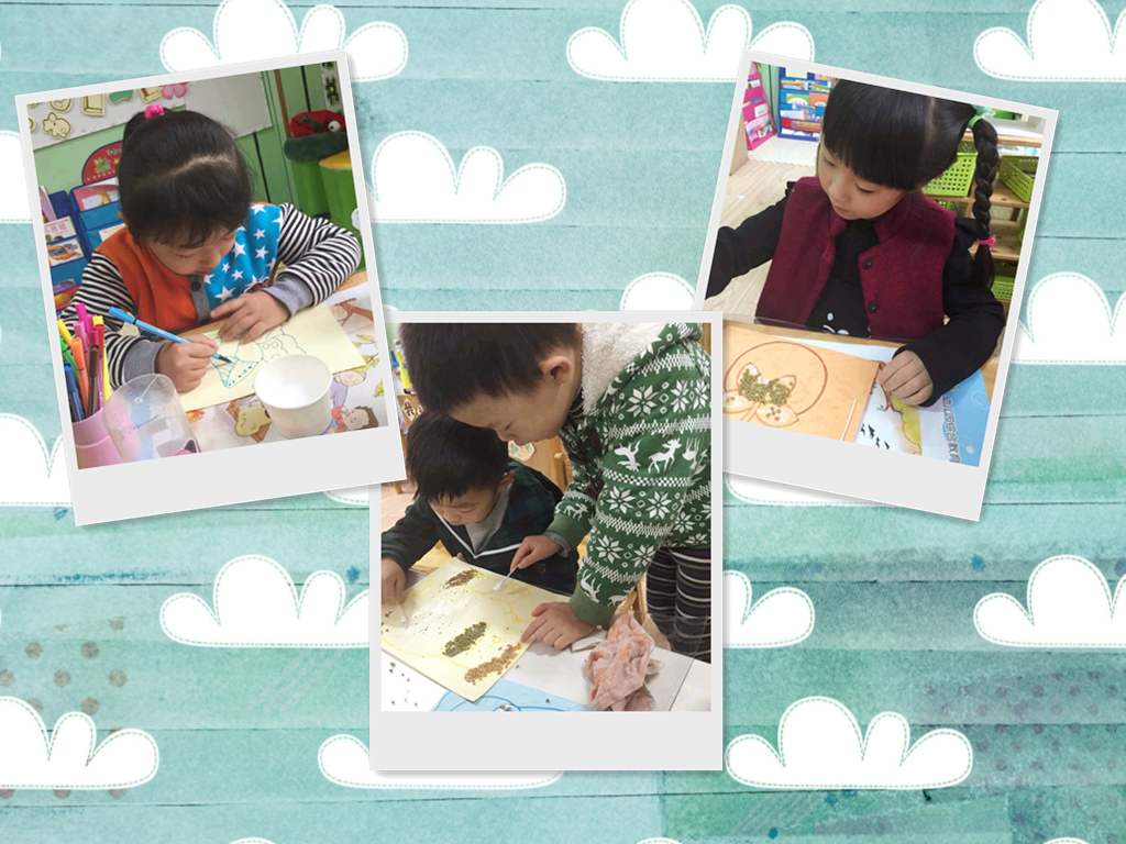 种子粘贴画是利用造型各异、五彩缤纷的种子进行平面创造的艺术形式。种子粘贴画的图形图案一般是简单的、大块面的,小朋友需要选择合适的种子进行精心的排列,完成一幅幅漂亮又独特的作品。瞧,大一班小朋友正如火如荼的制作着自己的种子粘贴画呢!