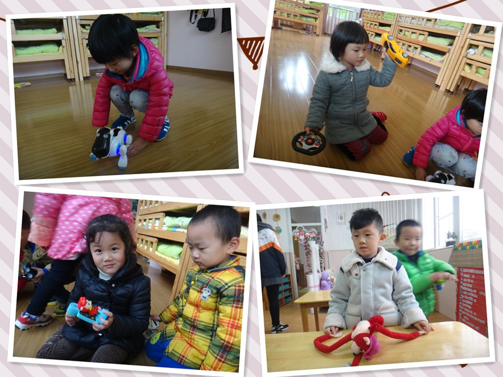 你们知道玩具有哪些类型吗?那我们一起来认识一下吧。今天我们从家里带了一件自己喜欢的玩具。在老师的组织下,我们在班内和小朋友互相介绍自己的玩具。大家一起玩,互相交换着玩,不能自私,要学会分享。我们在玩的过程中也认识了遥控、惯性、拖拉和发条这些类型的玩具。