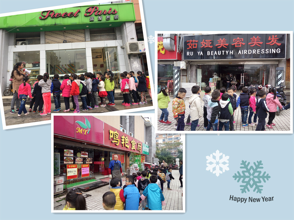 我们幼儿园周围有哪些好邻居呢?我们一起去找一找吧,我们参观了理发店,理发店的叔叔阿姨在帮客人打理发型,还有蛋糕店、饭店、银行、报停等等,原来幼儿园附近的好邻居有这么多呢! |
