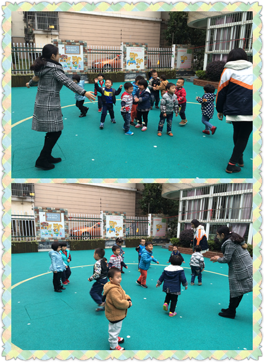 在游戏中孩子们不仅能根据口令的变化,做走、跑、停的交替动作,还能在老师的指导下,懂得奔跑过程中如何注意避让同伴,从而学会保护自己。让我们都变成美丽的小树叶和风儿一起舞蹈吧!