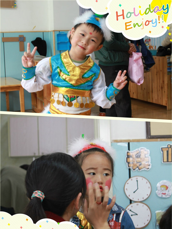 红红火火的中国娃主题已经结束,在这结束之际,我们大班年级组也迎来了中国娃主题的联欢活动。 活动当天,小朋友们早早的就来到幼儿园班级进行化妆和准备。爸爸妈妈们也是随着我们一起来到了幼儿园。今天所有的大班小朋友都来参加我们的民族大联欢活动,我们的心里还是很紧张的。在活动开始之前,我们都坐在小椅子上等待着,爸爸妈妈们也陪着我们一同等待,等待真的是很漫长啊。 演出开始啦!大班的每个班小朋友都上台表演了精彩的节目,哎呀,轮到我们上台啦!做好准备。 对了,我们的爸爸和江老师也上台唱歌了,《龙的传人》,我们早就会唱啦。 演出结束之后,就是我们的美食分享环节啦。我们品尝到了各个民族的特色美食,哈哈,真好吃。 |