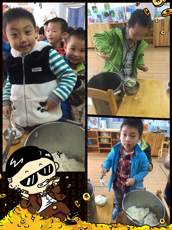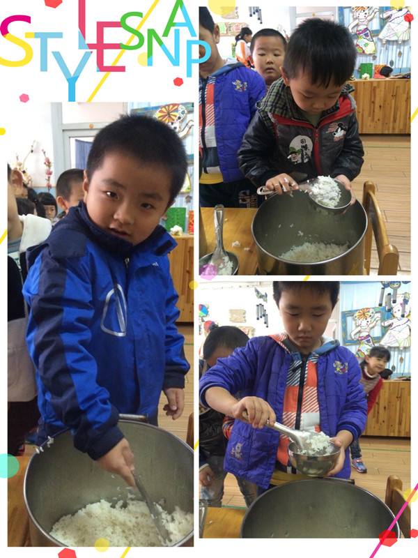 最近班级了发生了很大的变化。我们班级的桌椅都挪动了位置,我们现在的座位也不固定啦,小朋友们今天想和谁坐在一起就和谁坐在一起。听老师说,要进行课程游戏化的尝试。反正,我们觉得很好玩,比以前更自主啦。 今天中午吃饭之前,老师告诉我们要自己来尝试一下打饭和打菜。哇,这些事情,我们在家里可没有做过。心里有点小激动。 洗完手,我们排排队,打饭啦!喂,前面的快一点呀!小朋友们第一次自己动手打饭菜,动作有点慢,但是都表现的棒棒的。下面请看我们自己动手打饭菜的照片吧。