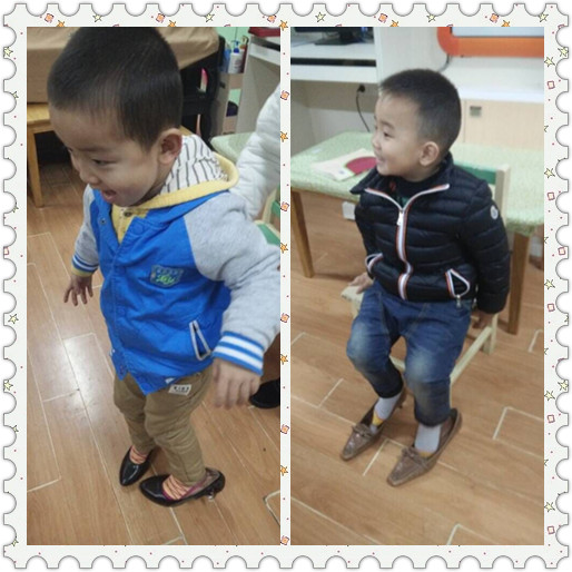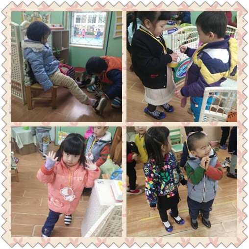 今天上课尝试了一次妈妈的高跟鞋,鞋子在地上踢踏踢踏的声音可好听了,在玩娃娃家的时候,妈妈们喜欢穿着高跟鞋出去买东西,有时候爸爸们也会经常帮助妈妈穿上高跟鞋,可贴心了!
