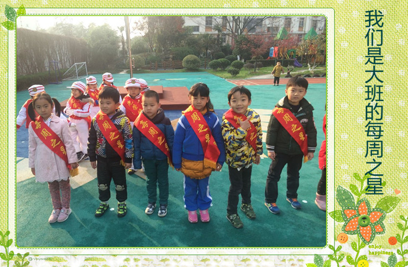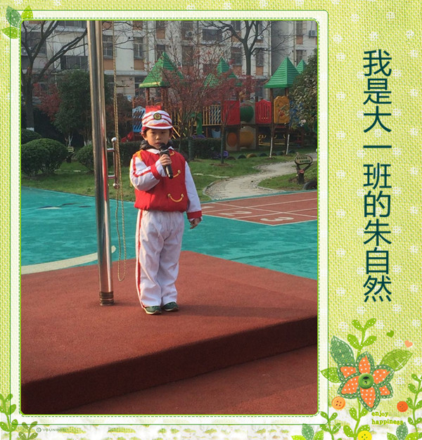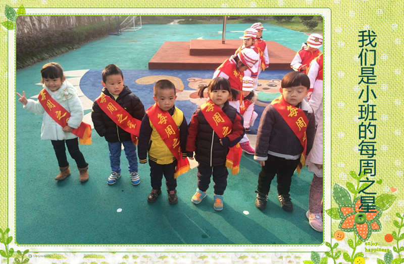 2015年12月7日上午,南京市翠屏山幼儿园举行了第十五周升旗仪式。8:30分升旗仪式正式开始。担任本周升旗手的是来自大一班的朱自然小朋友。她是一个知错能改且积极上进的小朋友。 伴随着激昂有力的出旗乐曲,六位护旗手护卫着国旗,在高老师的带领下大步向前走,本周的护旗手们分别是大一班的叶一萱、大二班的周睿哲、大三班的薛羽彤、大四班的蒋周逸、大五班的吴玥霖和大六班的舒子铭。 国歌响起,升旗手有节奏地拉着升旗绳,鲜艳的五星红旗徐徐升起,全场的小朋友们、家长、老师们伴随着乐曲唱起国歌,歌声嘹亮,悦耳动听。 今天国旗下讲话的是中二班的申老师。国际残疾人日是每年的12月3日。 残疾一般可以分为视力残疾、听力残疾、肢体残疾、智力残疾和精神残疾五种类型。关爱残疾人是全社会的责任,让我们从今天做起,从身边做起,从小事做起,从一点一滴做起,不只是在今天,而是在每一天。让我们每一个人都献出爱心,弘扬中华民族尊老爱幼、扶残助残的传统美德,给残疾人更多关爱和帮助吧! 接下来是大班的每周之星。 然后是中班的每周之星。 最后是小班的每周之星。 |