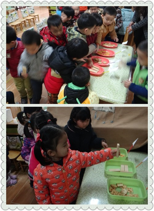 今天我们的饼干超市开业啦,我们试吃了好多饼干,可好吃了!我们在游戏中也学会了自己做饼干,看!我们做的多认真啊,我们做了夹心饼干,芝麻饼干,还有印花饼干,做的真漂亮,有红的,紫的,蓝的,绿的,看得我们直流口水,真想一口把它吃掉!