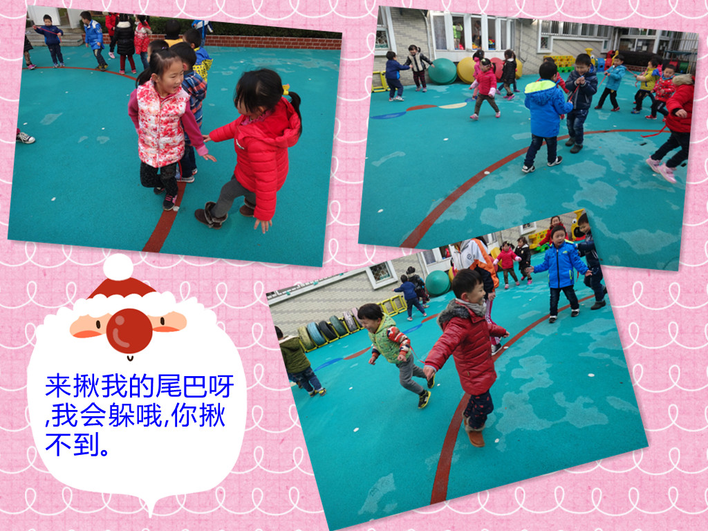 我长了条尾巴,你相信吗?哈哈,想不想揪住我的尾巴?不是这么容易的哟,首先你得跑得比我快,其次你还要不摔倒,最重要的是我会侧步移动躲闪你,你有信心揪到我的尾巴吗?天气那么冷,我们动起来吧!
