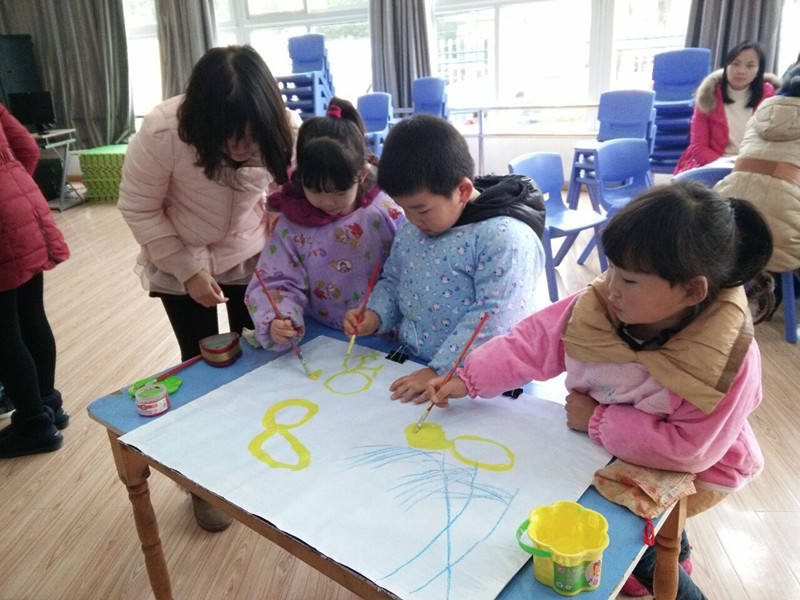 本学期,周蓉老师的中班幼儿美术活动经过多次教学研究及调整,将活动名称《小鸭过桥》修改为《快乐的小鸭》,经过反复的试上研讨,将单一的添画改为水粉绘画加上添画小鸭的嘴巴和脚,将单独作画调整为小组合作,教学环节更为精简、生动,孩子们笔下的小鸭也更加栩栩如生,展现出活灵活现的各种姿态。