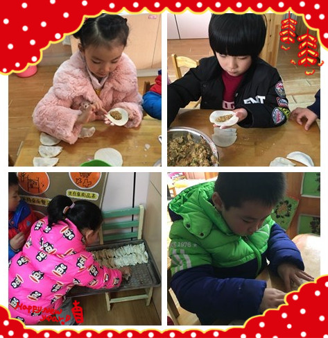 为了使整个活动更加具有趣味性和挑战性,老师们精心策划组织了一系列丰富而有意义的活动:制作新年贺卡、包饺子、吃饺子、寻宝、户外狂欢、才艺表演、独立用餐洗漱、爸爸妈妈我想对你说、穿新衣、拆礼物等等。今晚,翠屏山幼儿园一改往日的宁静,传来阵阵欢呼声、欢笑声。