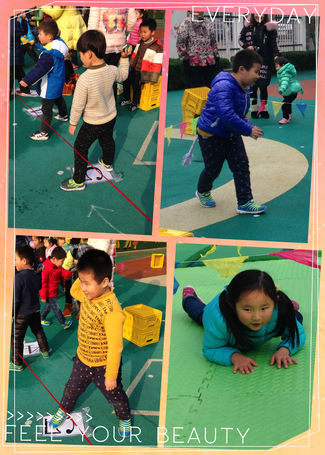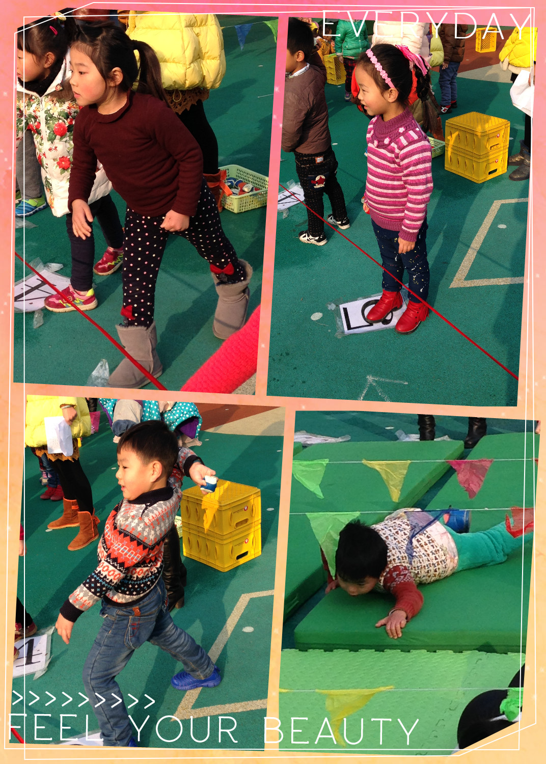 冬天,因为气候寒冷,许多人不愿意参加体育运动。但正如俗话所说:“冬天动一动,少闹一场病;冬天懒一懒,多喝药一碗。”“夏练三伏,冬练三九。”这些都说明,冬季坚持体育锻炼,非常有益于身体健康,于是我们开展了“冬季趣味运动会”,让孩子们在冬天动起来!锻炼起来!虽然天气寒冷,但是孩子们斗志昂扬,取得了傲人的成绩!让我们一起来看看中五班小宝们的精彩表现吧!