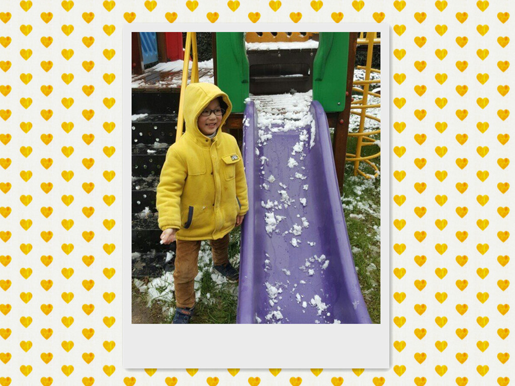 滑滑梯上全是雪哦,你们快来看!