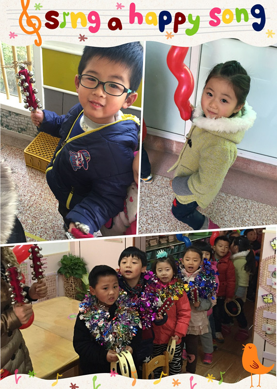 新年到,真热闹,小朋友们齐欢笑,敲起锣,打起鼓,我们一起去拜年! 新年到了,我们唱着好听的歌儿,去给大班的哥哥姐姐、小班的弟弟妹妹还有可爱的老师们拜年啦!