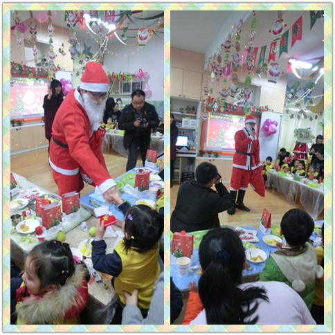 在圣诞活动进行一半的时候,有一个圣诞老人突然除出现了,我们可兴奋了,圣诞老人给我们都发了圣诞礼物,心里别提多开心了!