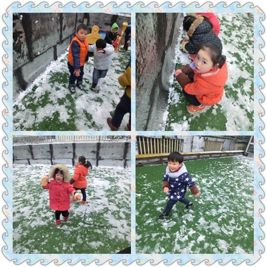 不仅有我们小班的弟弟妹妹,还有大班的哥哥姐姐和我们一起打雪仗,真是一个难忘的雪天!