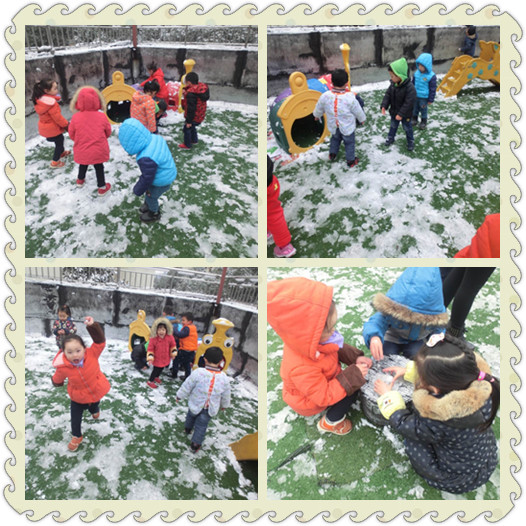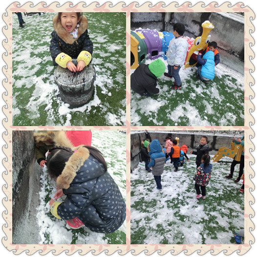 第一次在上学期间看见下雪的我们显得特别开心,老师带着我们出去打雪仗,我们兴奋地跑去玩雪,拿着雪球互相砸,玩的可高兴了!