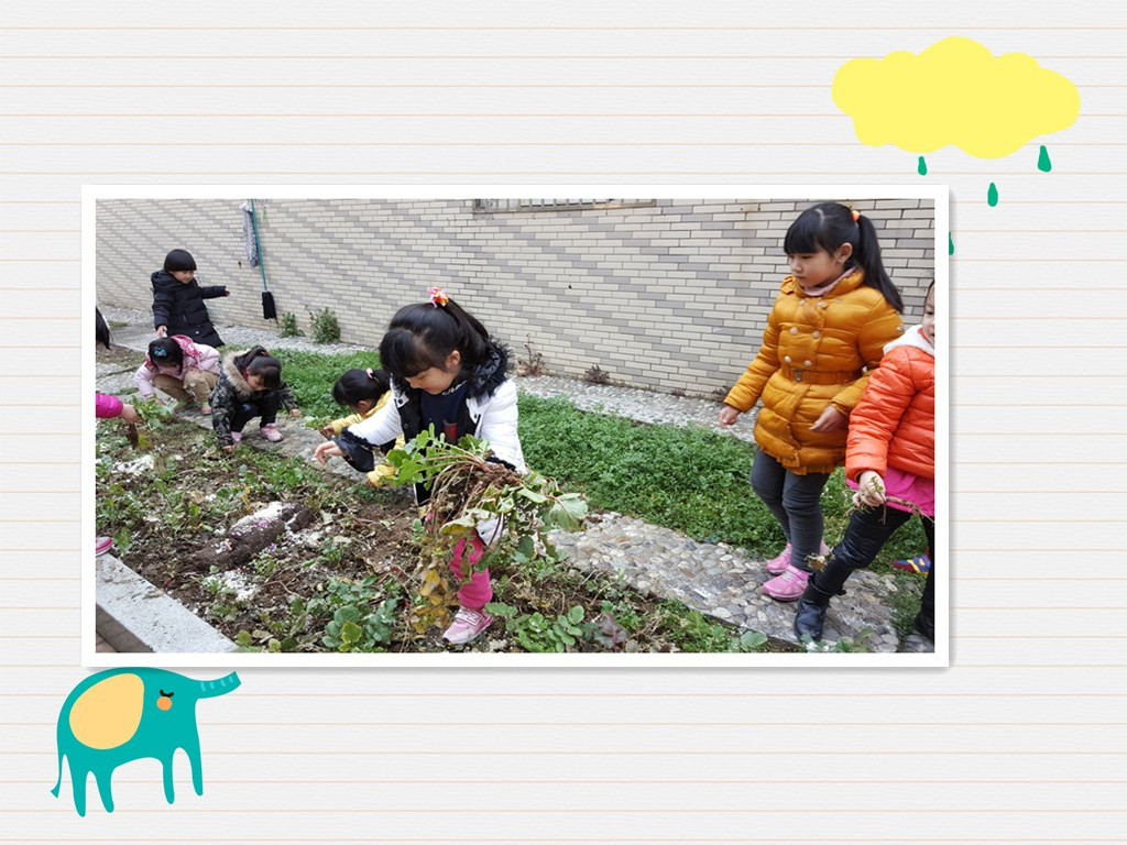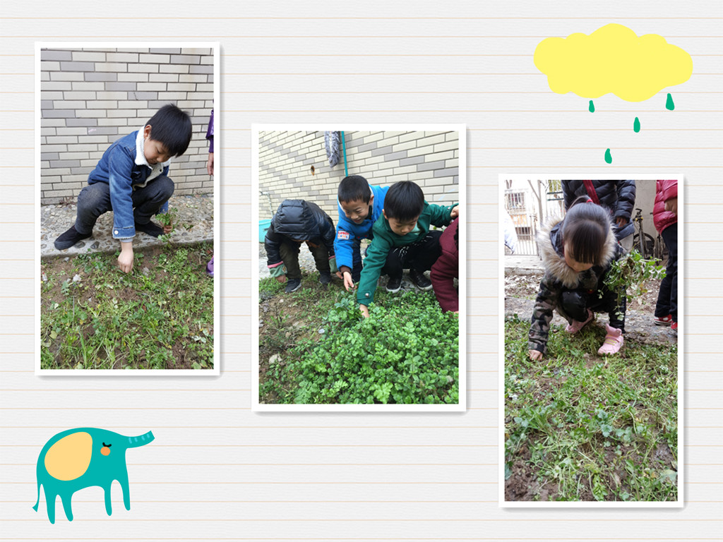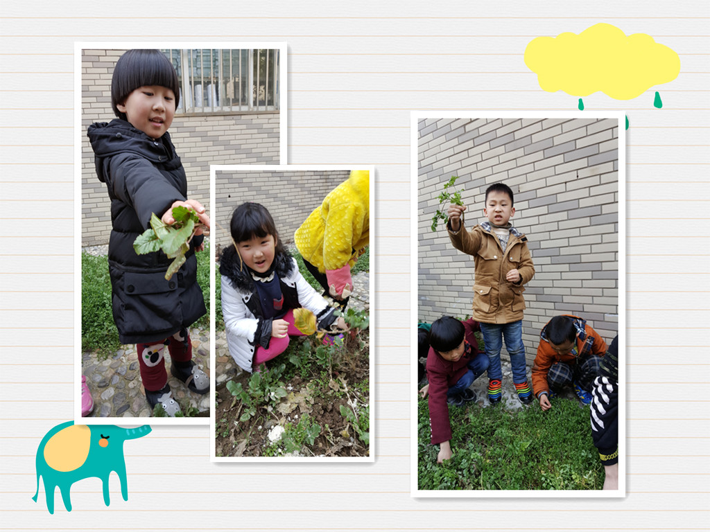 摘蔬菜喽! 在一个阳光明媚的午后,我们吃过午饭来到了幼儿园里长满了新鲜蔬菜的亲亲小菜园。菜园里有萝卜、香菜、葱……一颗颗翠绿的小菜苗挺立在土壤中,沐浴着午后的阳光。大一班小朋友们的眼睛里闪烁着欣喜的光彩,一个个围着菜地里的蔬菜看来看去。老师细心地为小朋友们讲解菜地里的各种蔬菜,并告诉小朋友们采摘蔬菜时要小心地捏着蔬菜的茎部,轻轻的将蔬菜连根拔起,这样我们才能摘到完整的蔬菜哦~