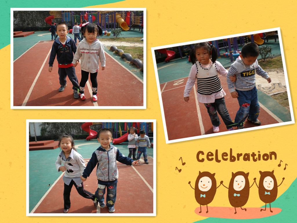 我们玩了一个特别好玩的游戏,叫做“两人三足”!就是两个人一起,用一根绳子绑住两个人的一条腿,这样,我们两个人就只有三条腿啦!哈哈……三条腿怎么走路啊?听起来就觉得好好玩哦!快来看看我们的精彩瞬间吧!