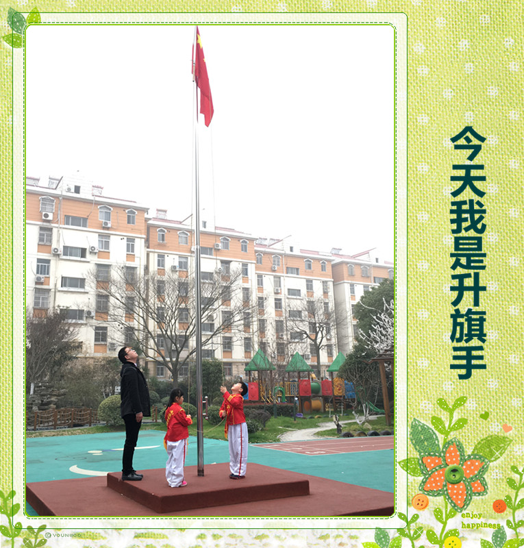 今天是2016年3月7日星期一,明媚的阳光舞进校园,朗照着翠屏山幼儿园每一位老师和小朋友的心。迎着和煦的春风,翠屏山幼儿园幼全体师生齐聚操场,伴着欢快的乐曲,翠屏山幼儿园第三周升旗仪式揭开了序幕。 本周升旗仪式由大二班的小朋友承担。他们分别是吴炜凡和徐娇阳,他们是老师的小帮手同学们的好伙伴。