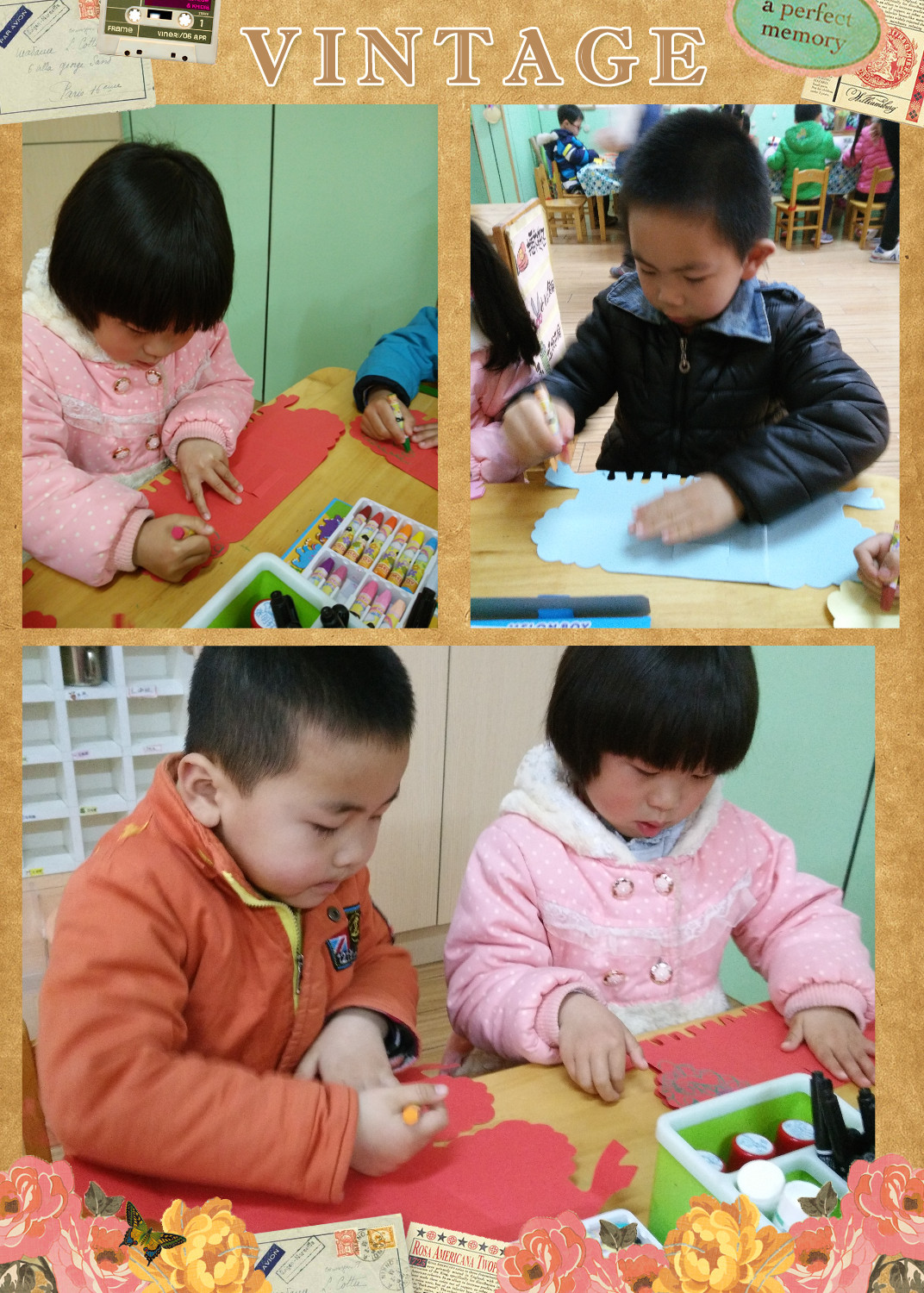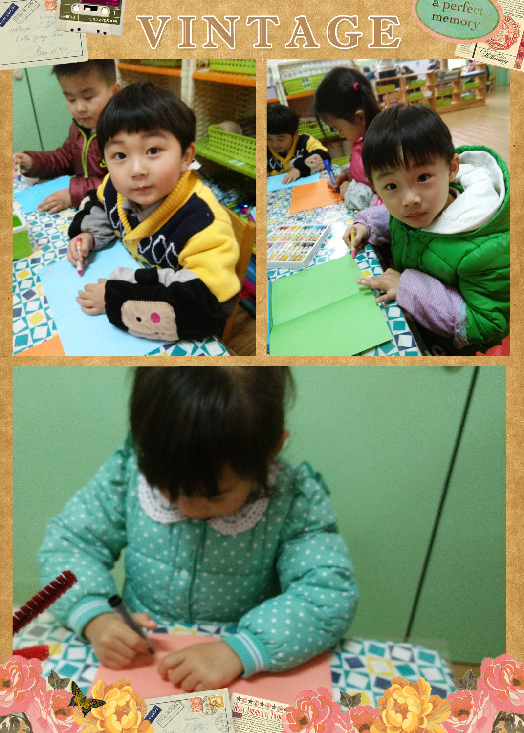 第三组小朋友要用绘画、涂色、粘贴等方式制作生日贺卡。