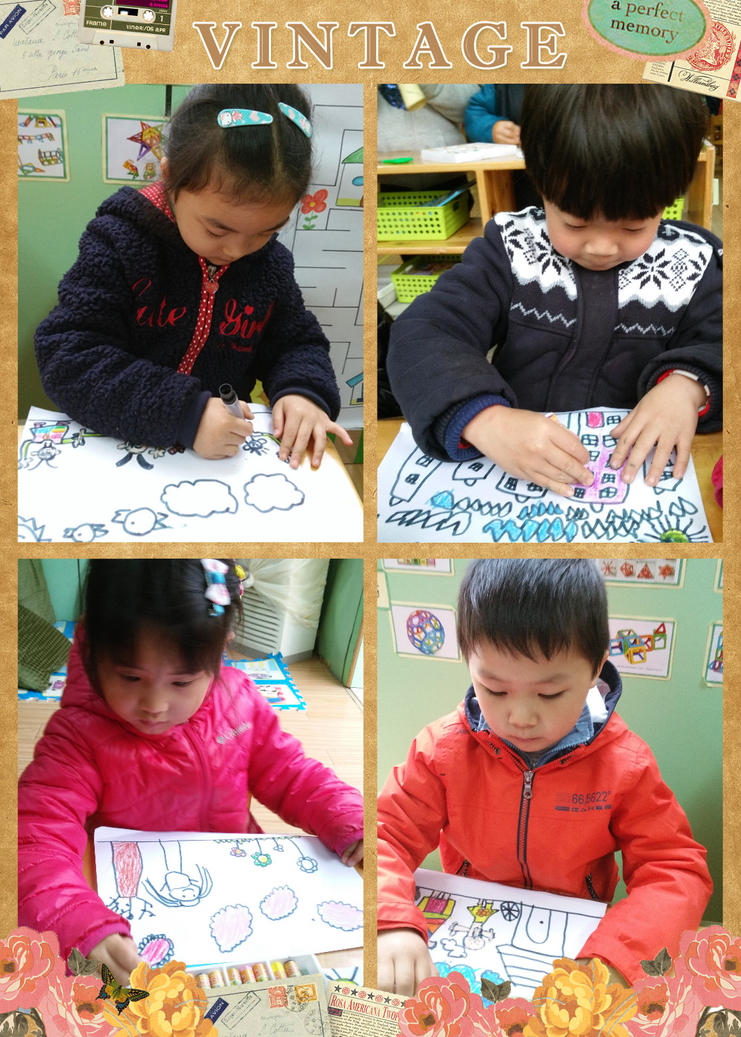 第五组小朋友用画纸绘画出最美丽的图画,还涂上了最漂亮的颜色,真用心!