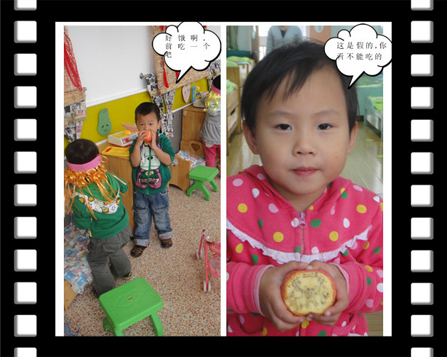 我们在玩娃娃家游戏,这是假的水果,你们可别当真啊!