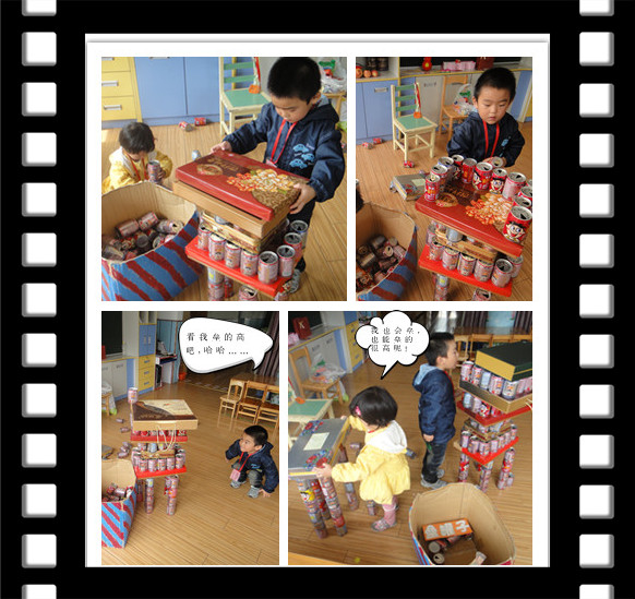 我们在垒罐子呢!瞧,我们垒的多高啊!像不像一座大城堡!