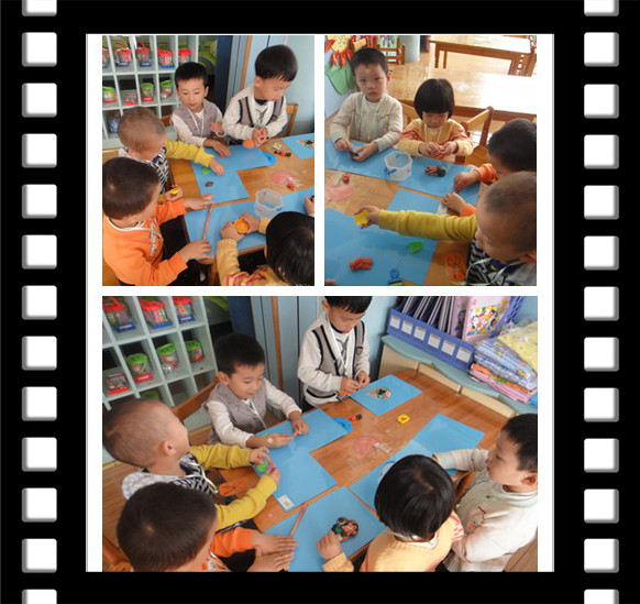 美工活动也是我们喜欢玩的游戏,用油泥做元宵,用磨具压出小动物我们都很认真呢!