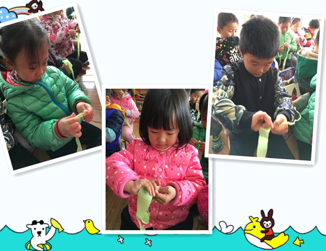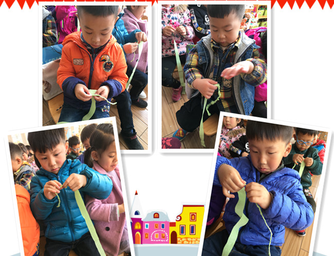 春天到了,结合主题《找春天》,我们在幼儿园里带领小朋友们看了春天开放的花,回来后我们通过制作柳条给班级也增添了一份绿意,老师给孩子们提供了绿色的皱纹纸,让孩子们亲手操作,既锻炼了中班孩子们的小肌肉,又让他们感受到为班级出力的快乐!