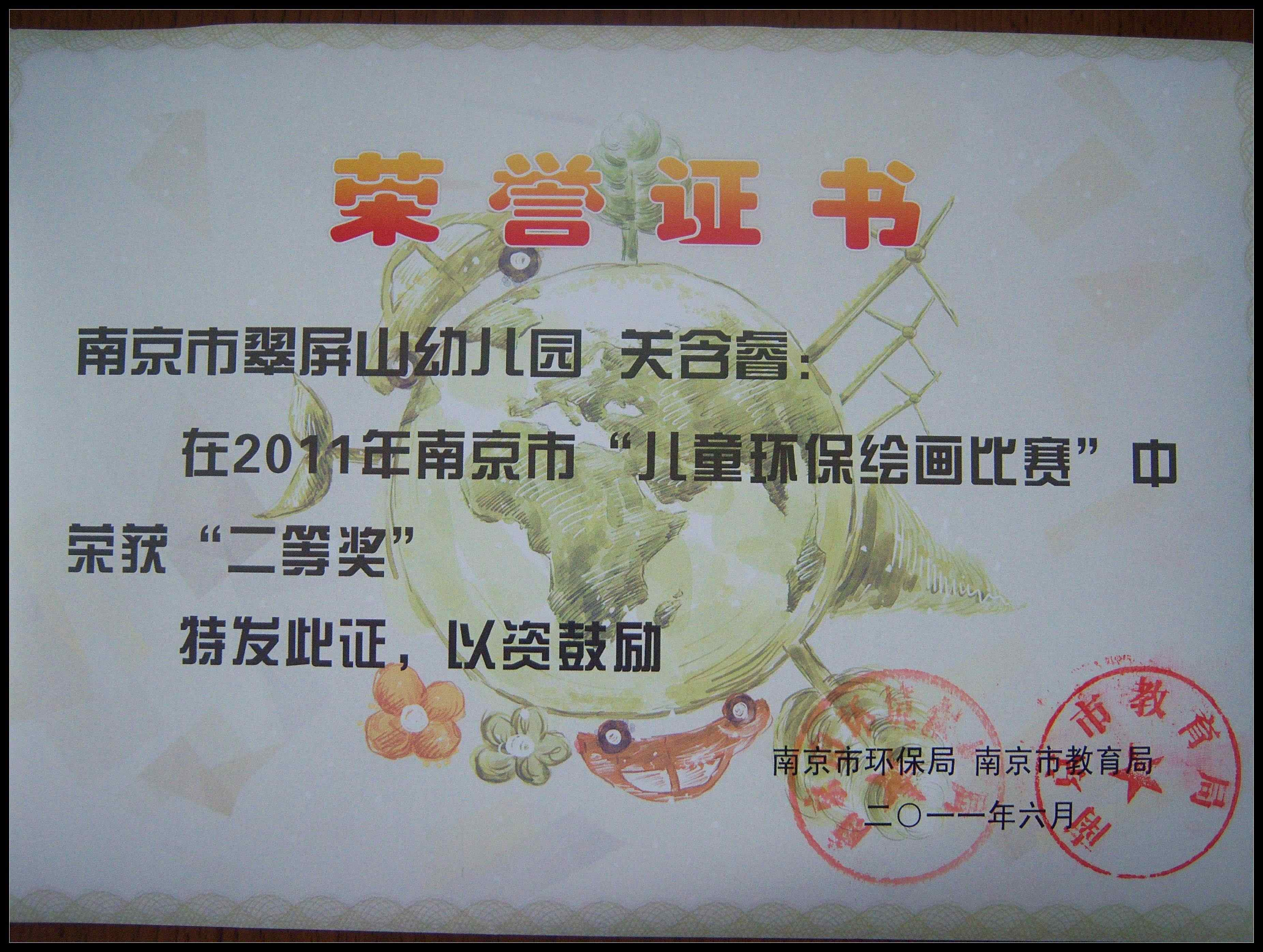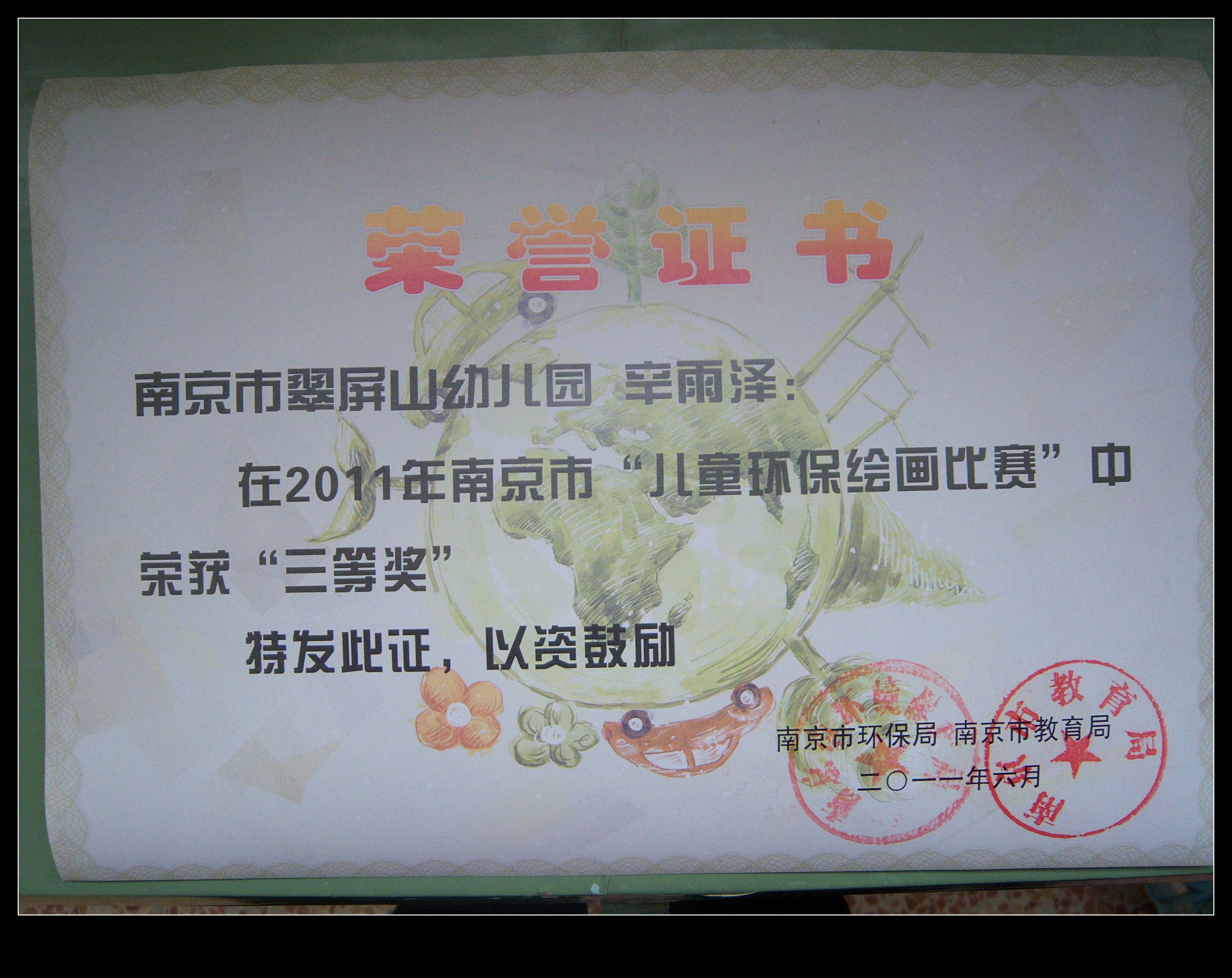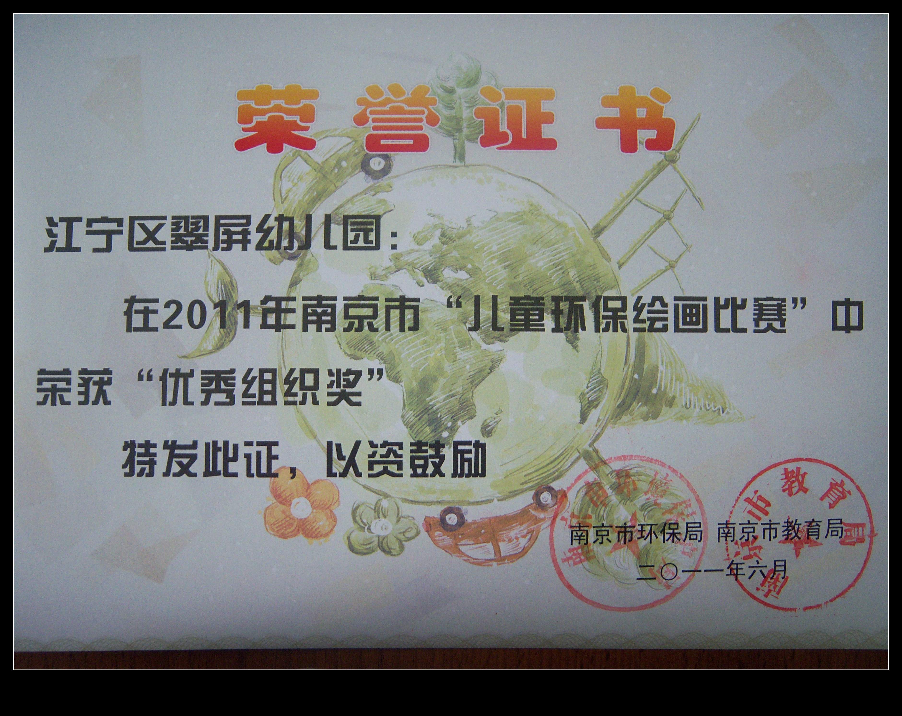 在全体师生精心准备和积极努力中,我园在南京市“儿童环保绘画比赛”中喜获好成绩。