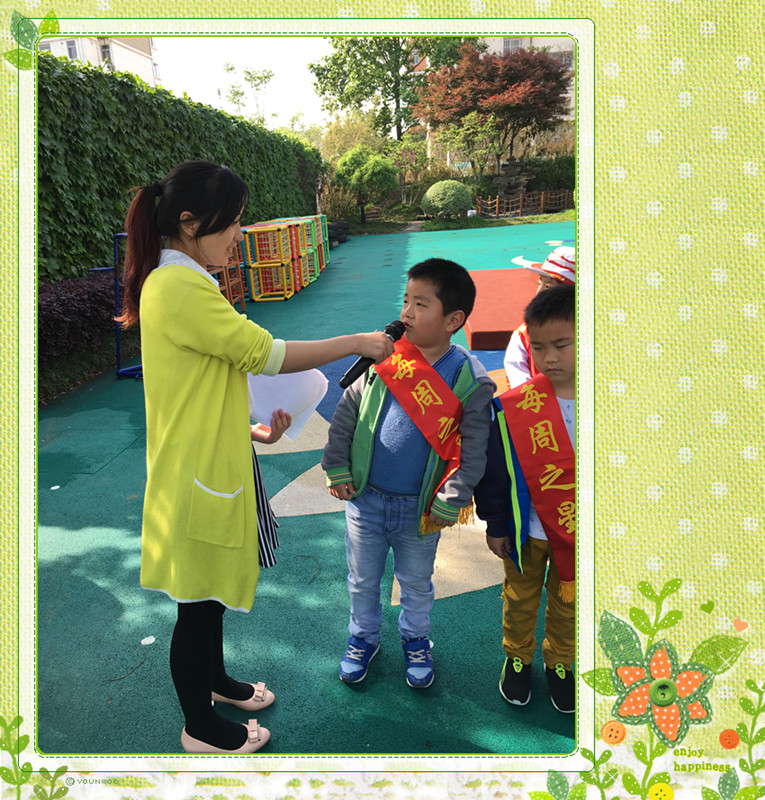 2016年4月19日的早上阳光明媚,翠屏山幼儿园上迎来了第九周升旗仪式,本周升旗仪式由大一班的小朋友承担。他们分别是陆思涵和陶沐轩。 随后大一班的小朋友托举着国旗铿锵走来,接着两位升旗手,步履轩昂地走向国旗,国歌响起,鲜艳的五星红旗升起,全场的小朋友和老师们行庄严的注目礼昭示着我们幼儿园的孩子们在幸福的时代里快乐健康成长。 地球是神圣的,美丽的。她是人类的母亲,是生命的摇篮。原来的天是蔚蓝色的,可以清晰地看见白云朵朵,地面上干净清爽,四处飘来鸟语花香,这是多么美丽的景色啊! 现在天不是那么蓝,据专家介绍是人为造成的。有工厂排放的废气,汽车排放的尾气。地上有污水成积。时常有那么些不讲卫生的人随处乱扔果皮、纸屑,日久堆积,没有人去管就那么睁眼闭眼的从旁边走过,这就给害虫制造了生存的有利条件。有许多水利资源被污染,鱼儿可怜地浮在水面上,这样的水还可以让我们安全饮用吗?如今我的地球母亲已经严重生病了。 我们人人都知道保护环境,讲究卫生,人人有责,让我们来爱护环境保护美丽的地球吧!地球永远是我们的家! 接下来是大班的每周之星。 然后是中班的每周之星。 最后是小班的每周之星。 |