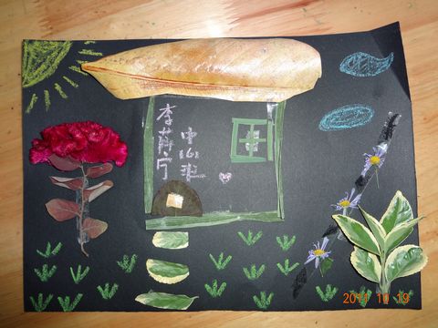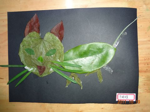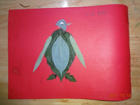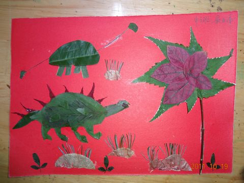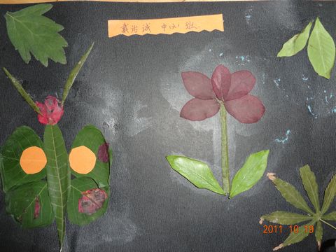 这些是爸爸妈妈和我一起完成的树叶拼贴画哦!