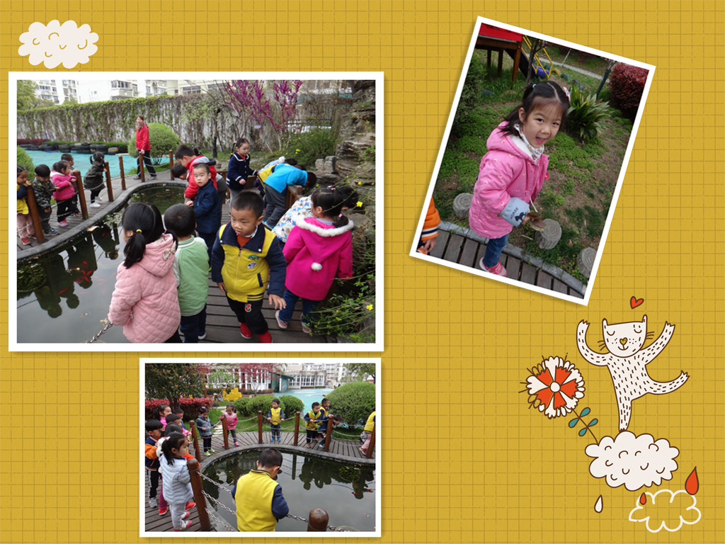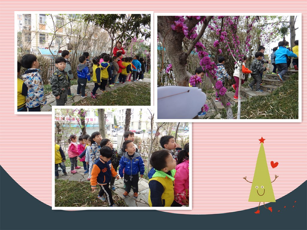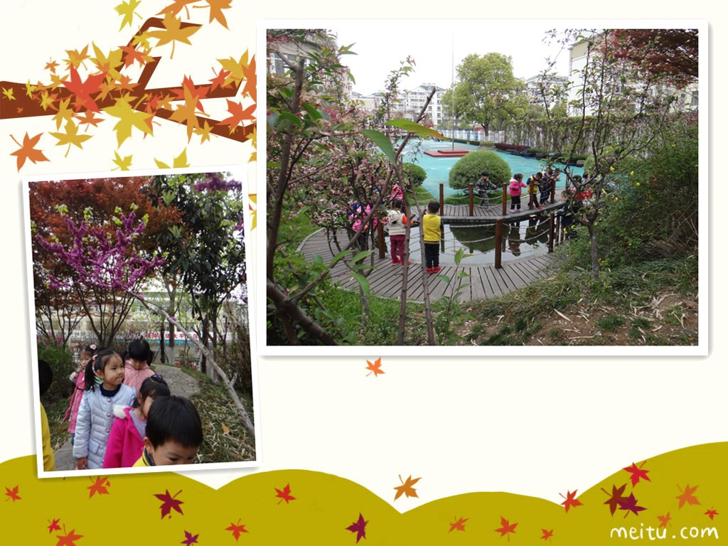 我们一起到小山坡上、池塘边、公园里去寻找春天的足迹,发现了很多春天的奥秘,另外我还学习了很多关于春天的儿歌哦!让我念给你听听吧!儿歌:春风 春天到了!春风轻轻的吹。吹绿了柳树,吹红了桃花,吹来了蝴蝶,吹醒了青蛙,吹的小雨轻轻下,我们一起去种花。