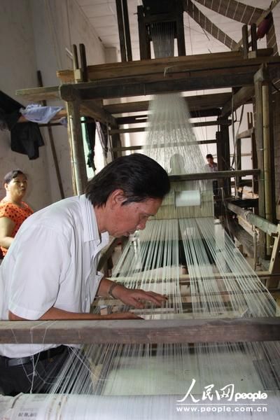 对了,就是用这种提花木织机来织的,两位艺人织一整天才能织出5~8厘米左右。